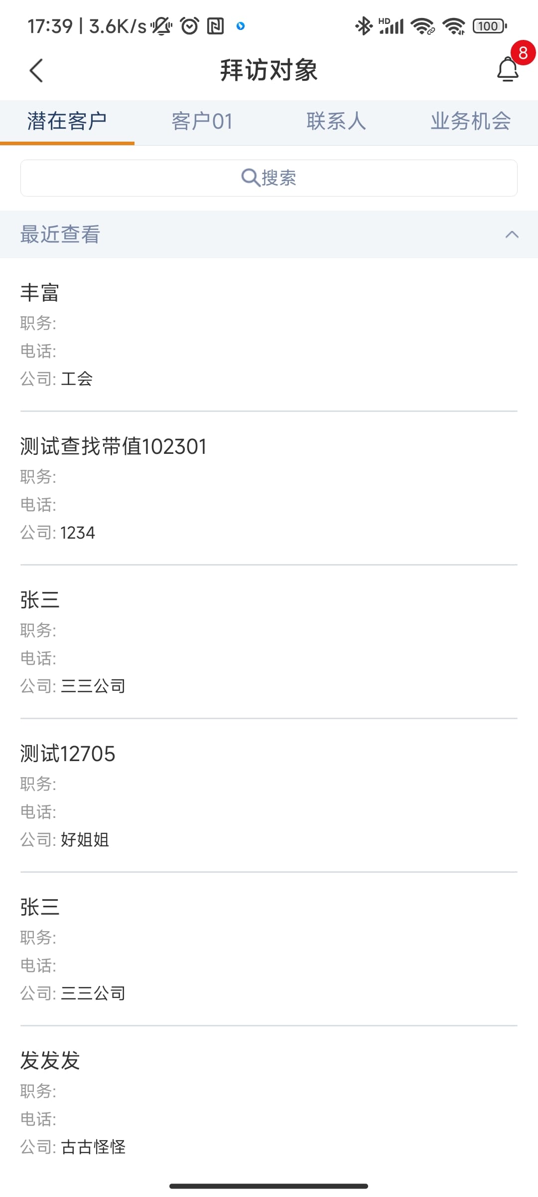 - 定位并进入目标潜在客户记录:在顶部导航菜单中点击「潜在客户」,在列表中找到并点击需要转换的目标潜在客户名称,进入其详情页面。