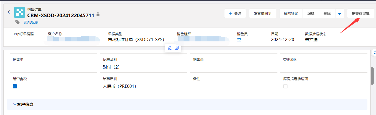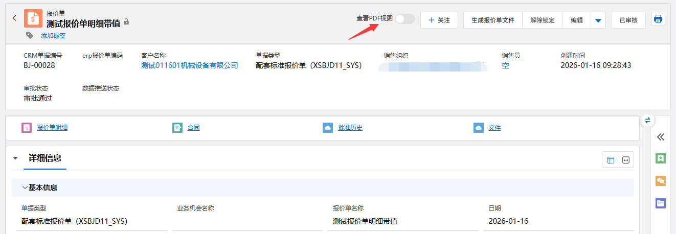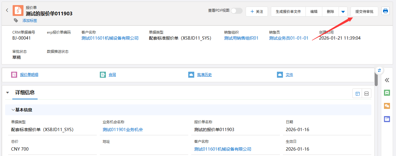⑤:数据栏,包括详细信息、相关列表信息、批准历史、文件等