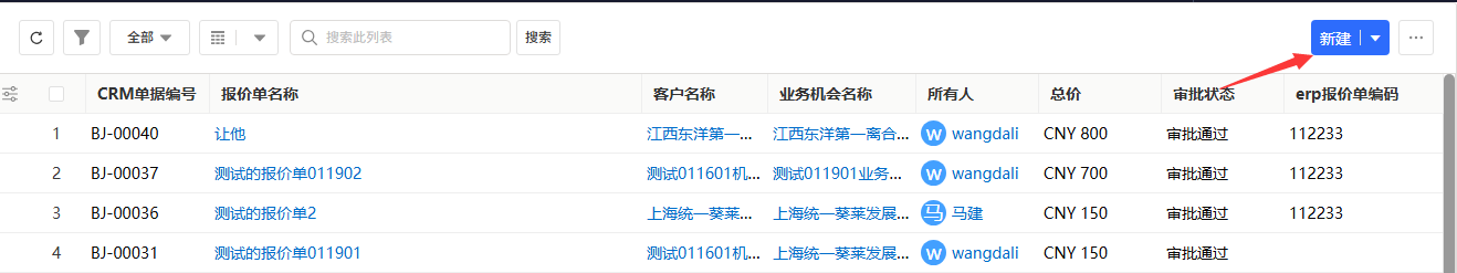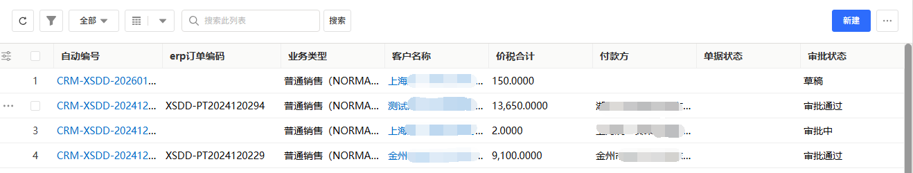 - 发起新建:在列表页右上角,点击「新建」按钮,系统将弹出新建表单页面。