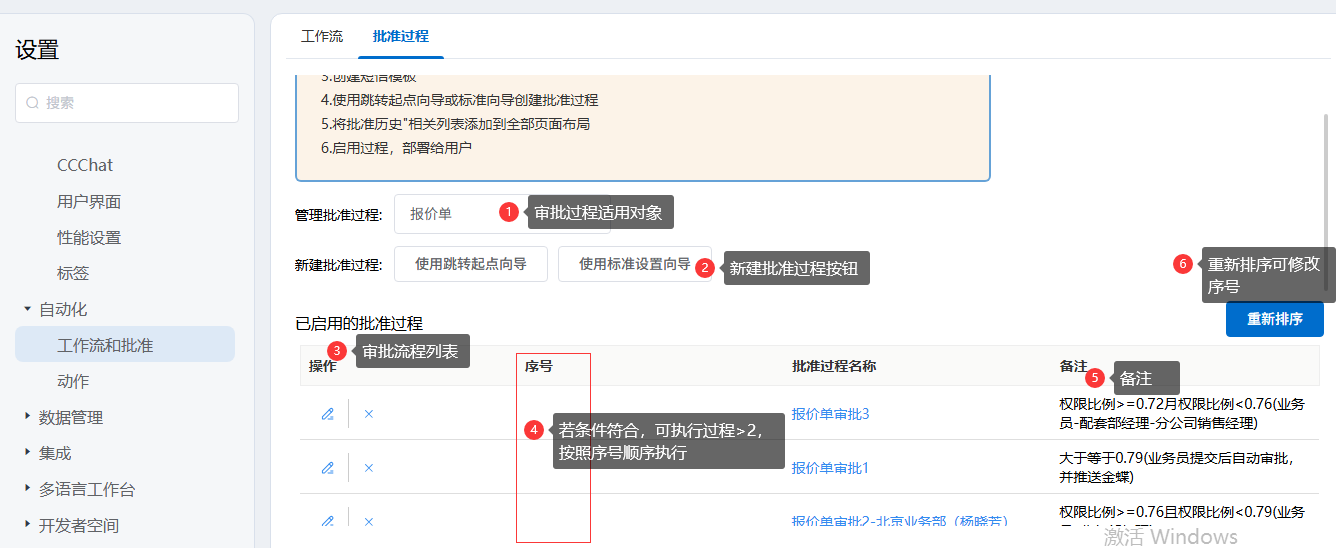 功能入口:后台设置→自动化→批准过程