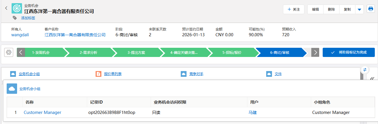 - 定位跟进状态组件:在客户详情页中,找到页面上方「进程栏」区域。