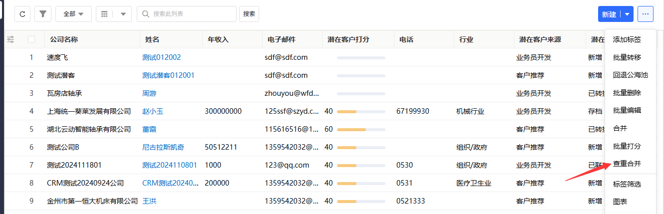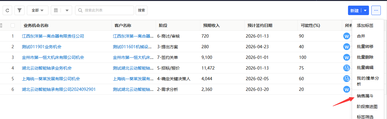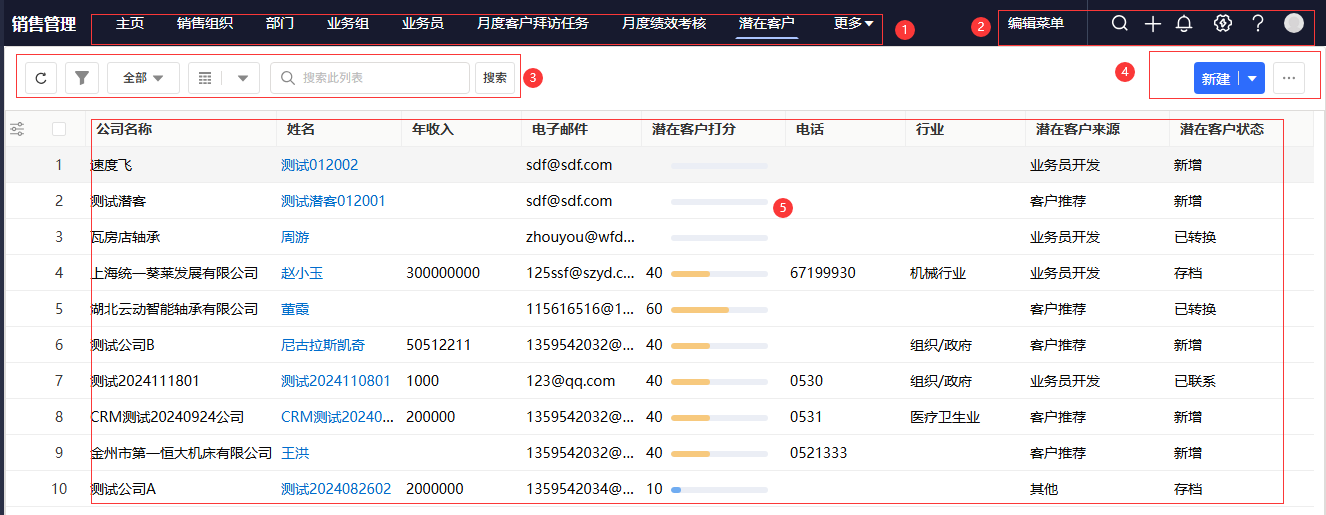 - 进入模块:登录系统后,在导航菜单中找到并点击「潜在客户」,进入潜在客户列表页面。