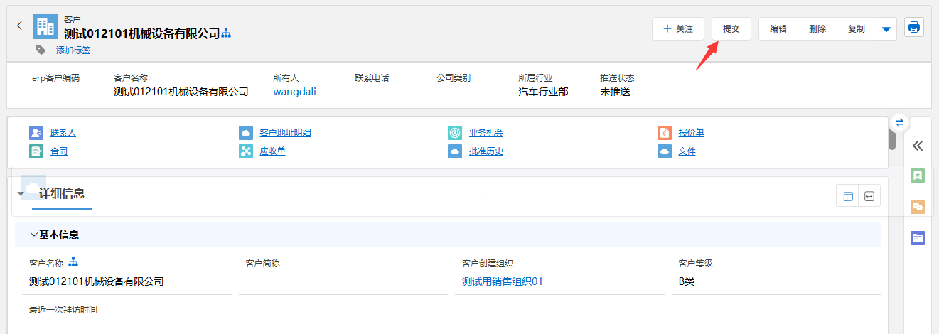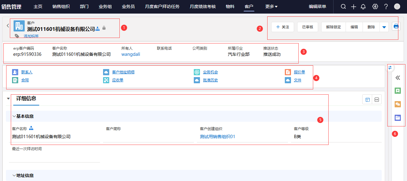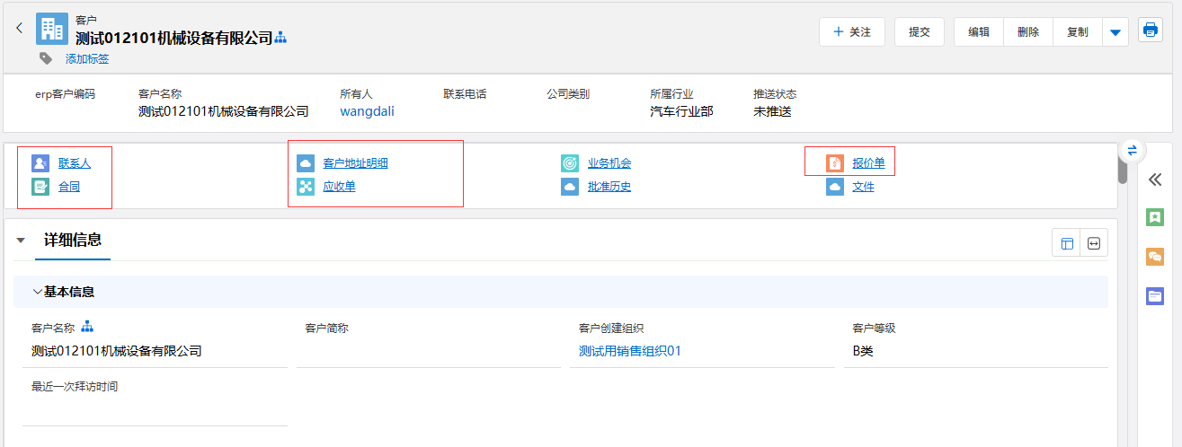 ④:相关列表栏,可以看到主对象的相关列表项,点击可快速定位到指定列表