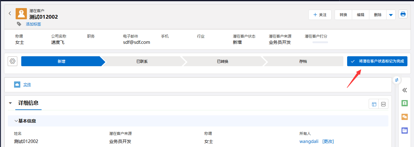 - 转换不可逆:此操作通常不可撤销,请在转换前确认潜在客户已具备转化价值。