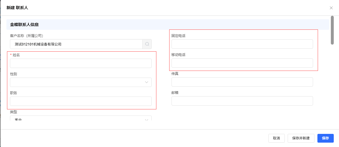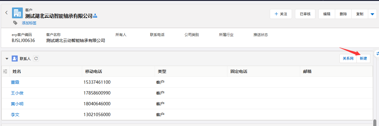 - 如需创建新联系人:在“联系人”区域,系统通常会基于潜在客户的个人信息预填联系人姓名等字段,请补充完整并确认。