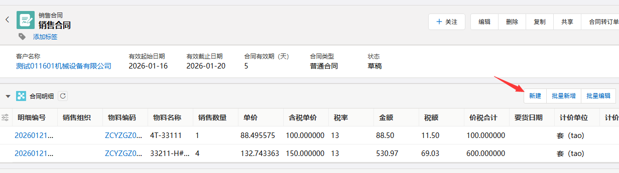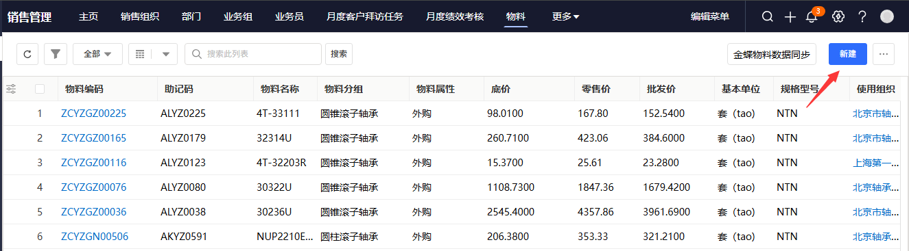 - 若企业尚未接入 ERP 系统,则需手动进入物料管理页面,点击“新建”按钮,开启物料记录的添加流程。