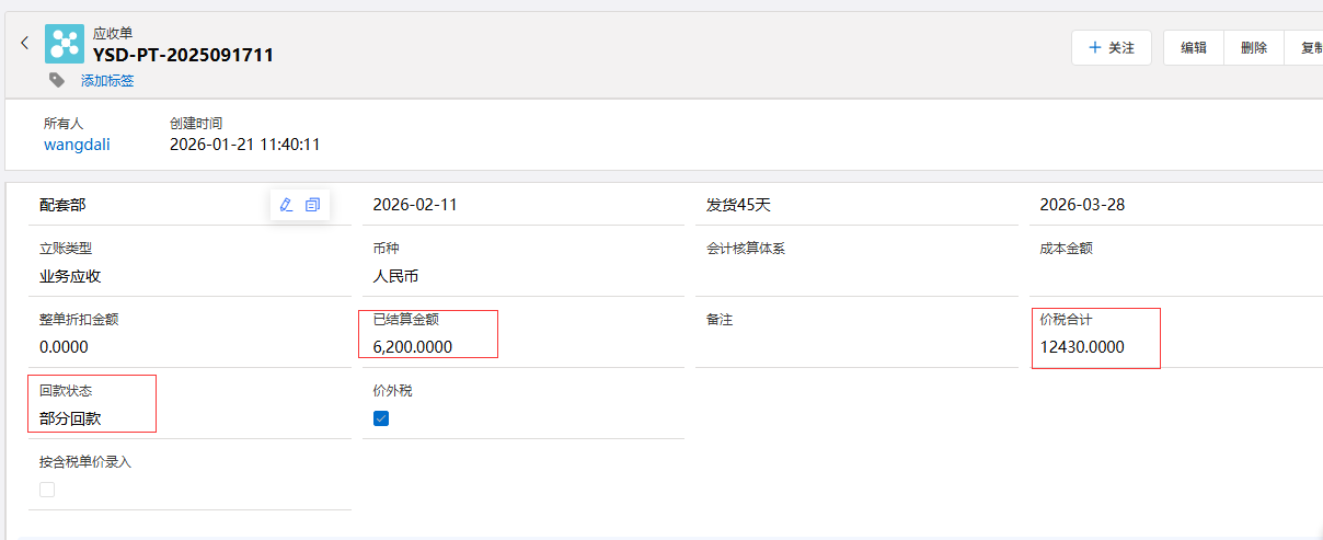 实际完成:关联应收单的价税合计金额。
