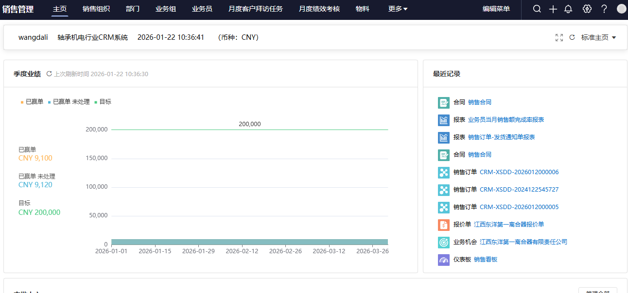 制造-轴承机电行业 CRM系统操作手册
