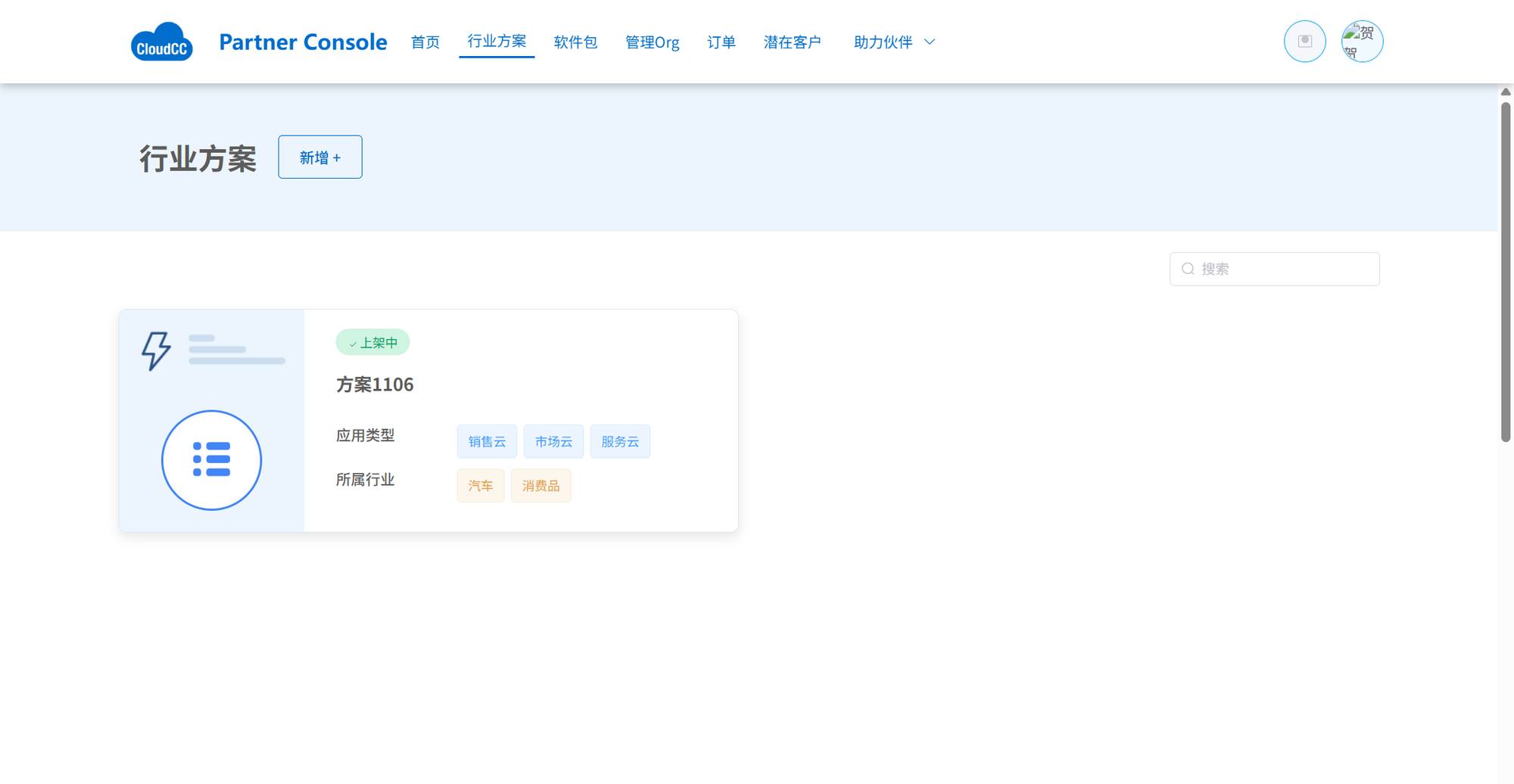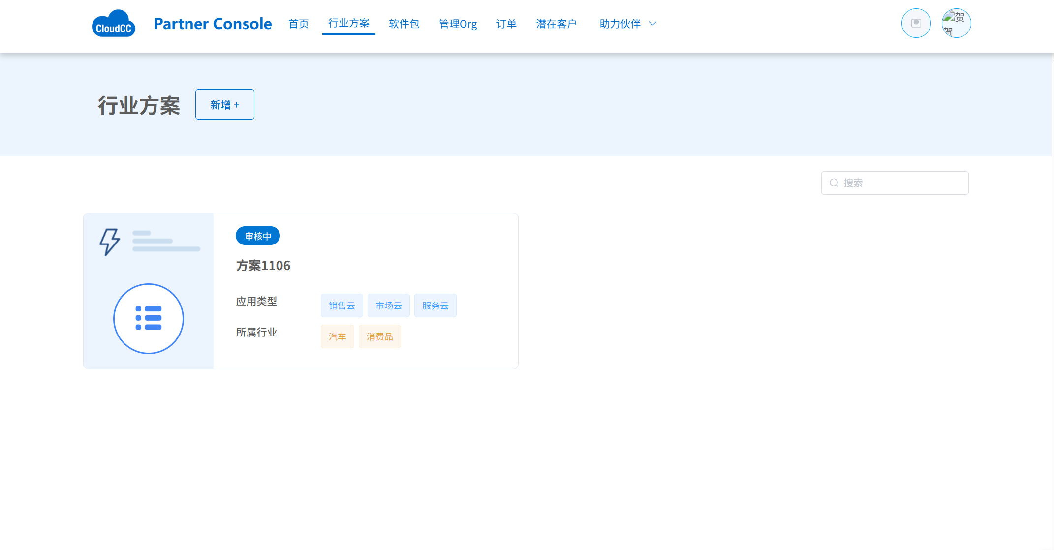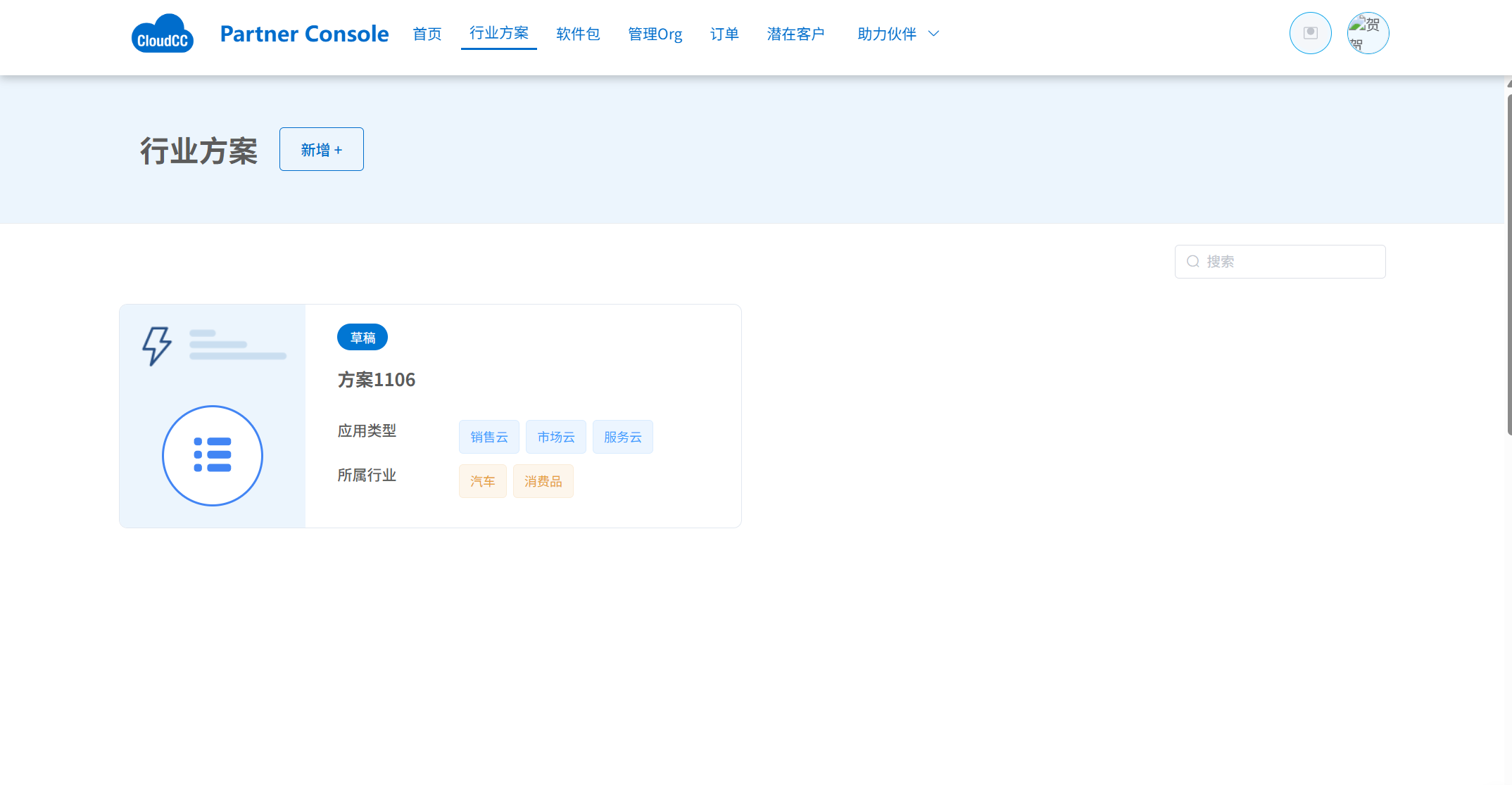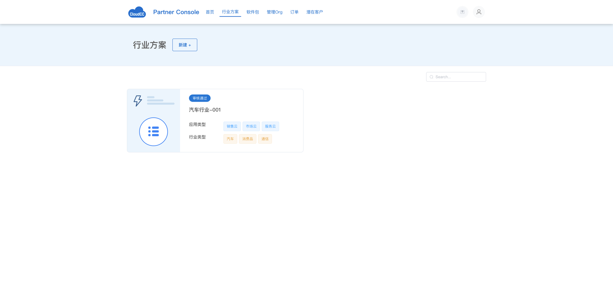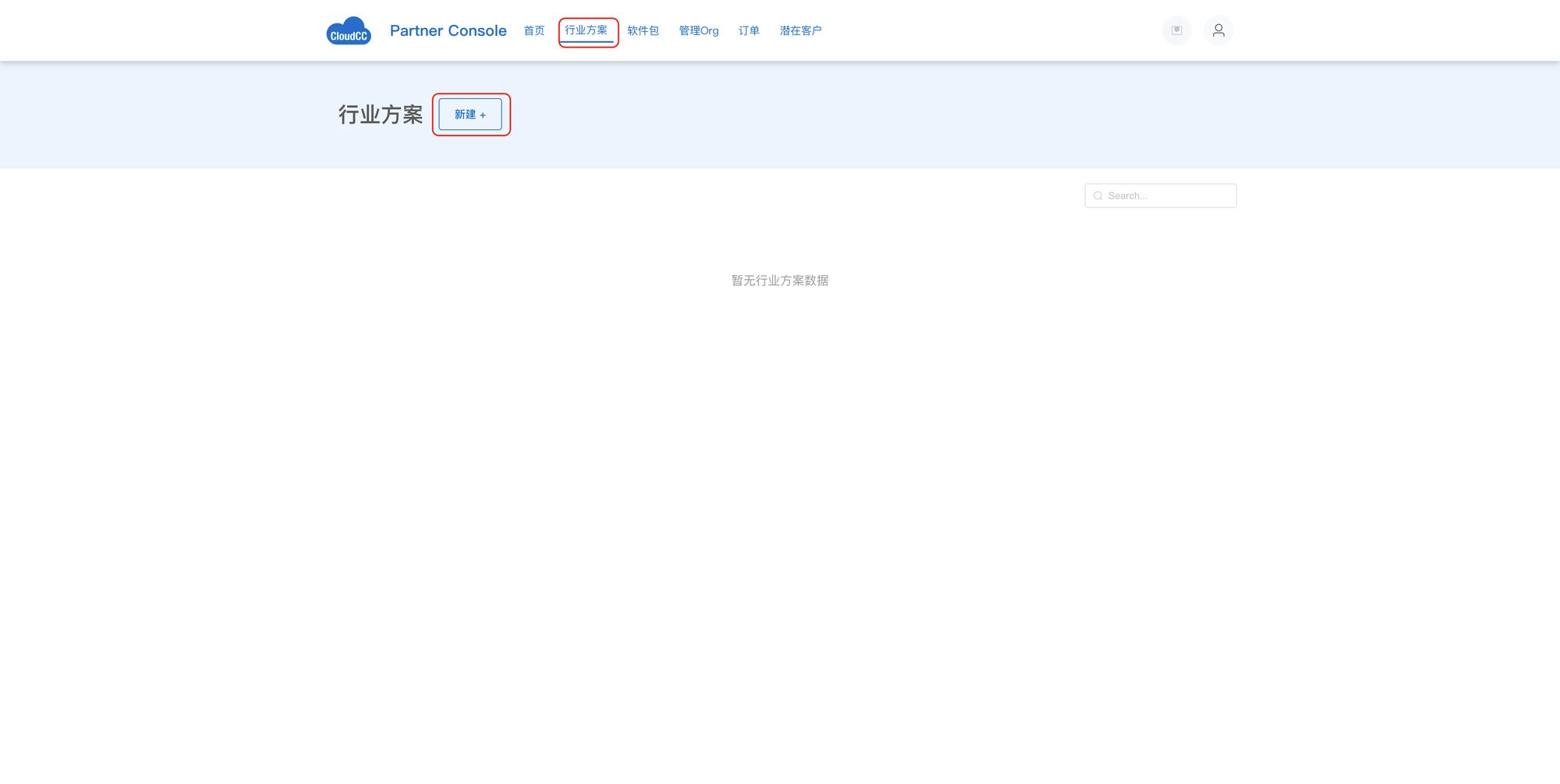 - 点击【行业方案】菜单 -> 点击【新建】