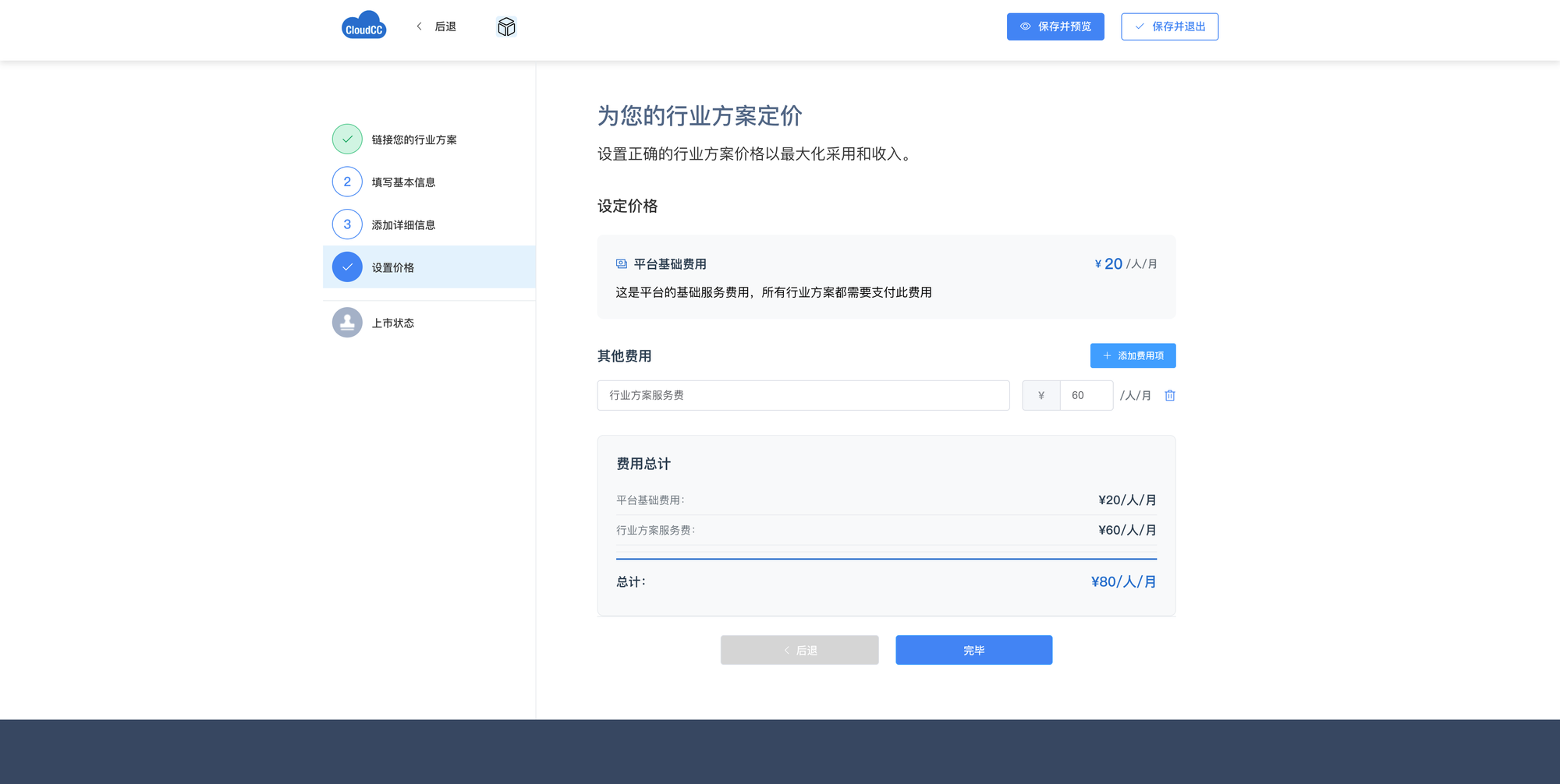 - 注意:方案必须包含20元/人/月的平台基础费用
