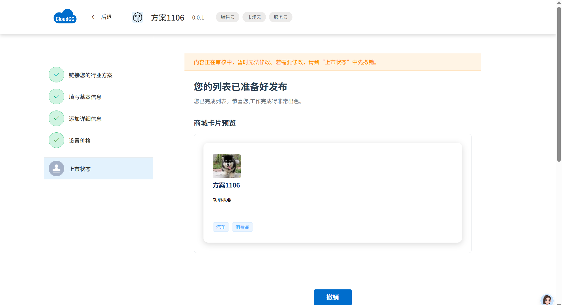 - 进入编辑页 -> 点击【上市状态】 -> 点击【撤销】 -> 进行修改