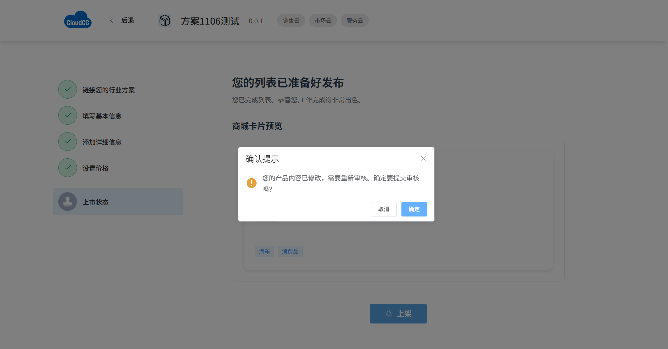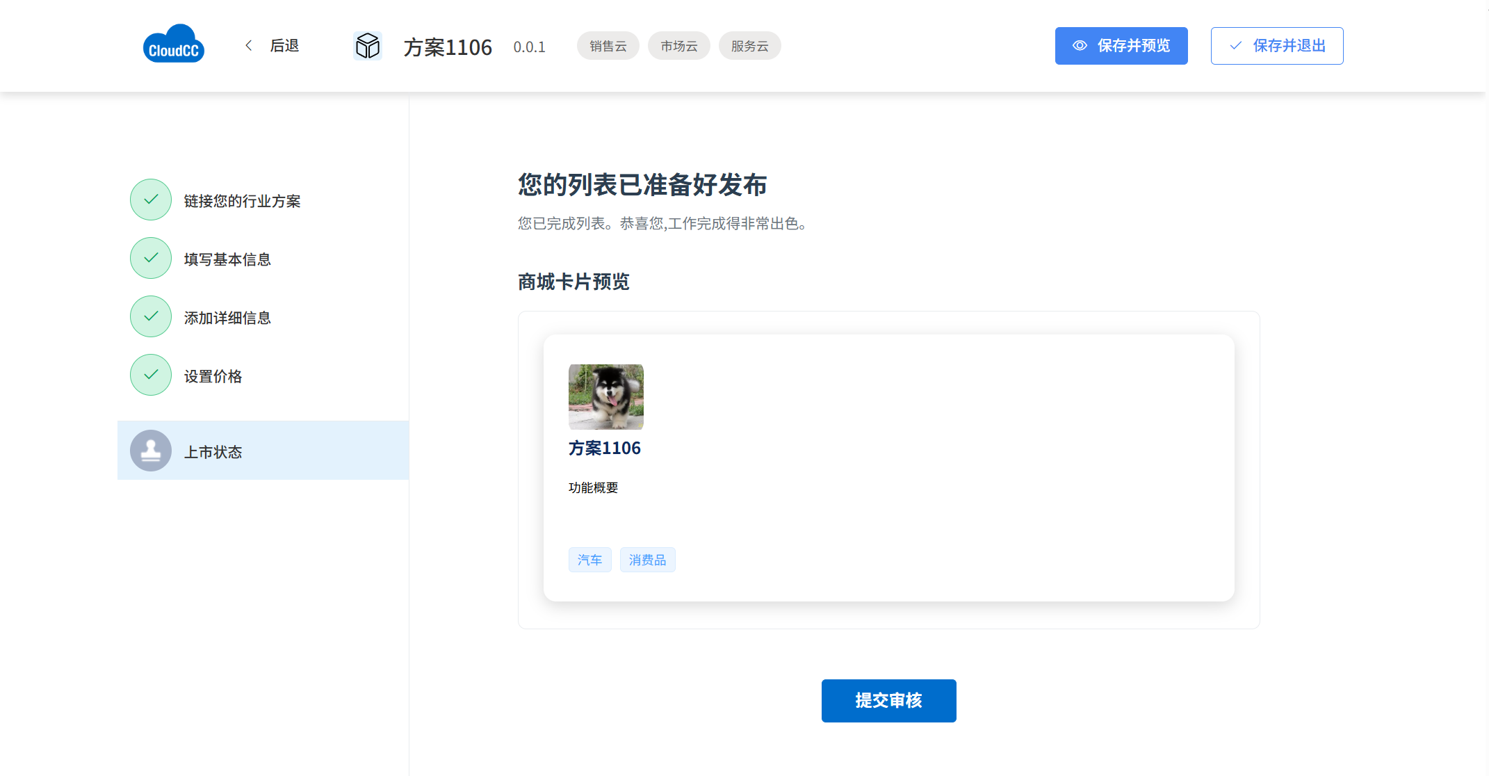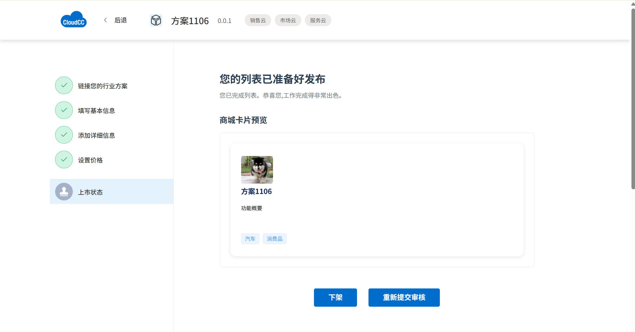 - 在商城中搜索方案名称,确认已成功上架,或者在首页最新方案中查看