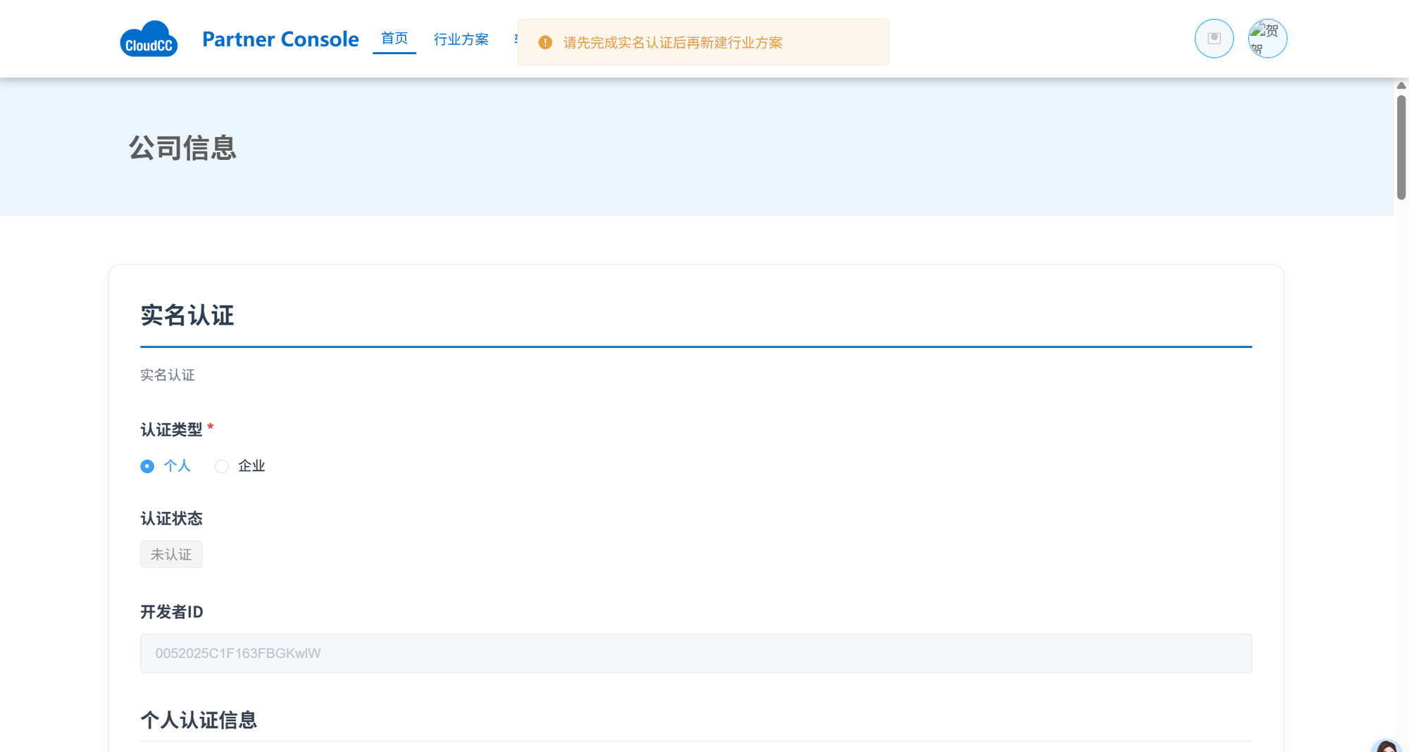 - 未认证:跳转至认证页面,需完成认证后方可新建方案(支持个人认证或企业认证)