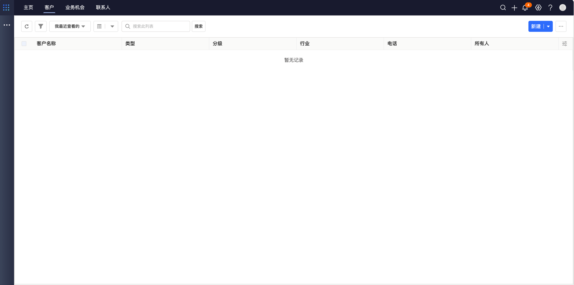 • 注意:由于新建业务机会需要选择客户,所以必须要先创建客户