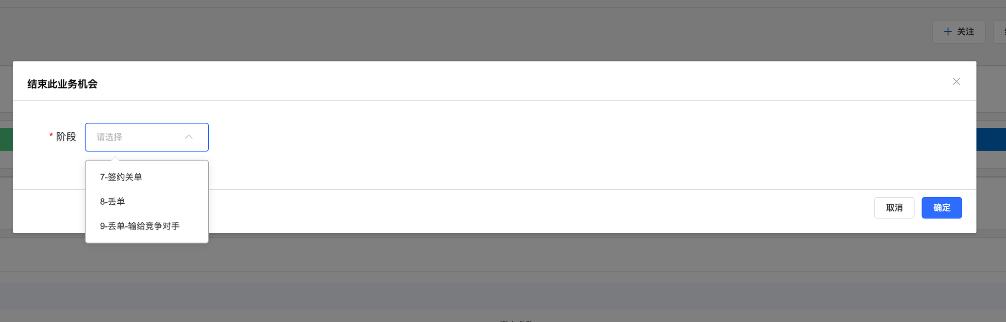 • 弹窗后选择新的阶段,点击【确定】